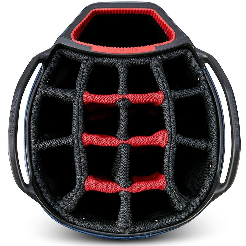 Das BIG MAX Aqua Tour 4 Cartbag verfügt über ein 14-fach unterteiltes Organizer Top, das eine geordnete Aufbewahrung der Schläger ermöglicht. Dank des separaten XL-Putterfachs haben selbst große Griffe ausreichend Platz. Gleichzeitig verhindert die durchdachte Aufteilung, dass Schläger aneinanderstoßen und störende Geräusche verursachen.