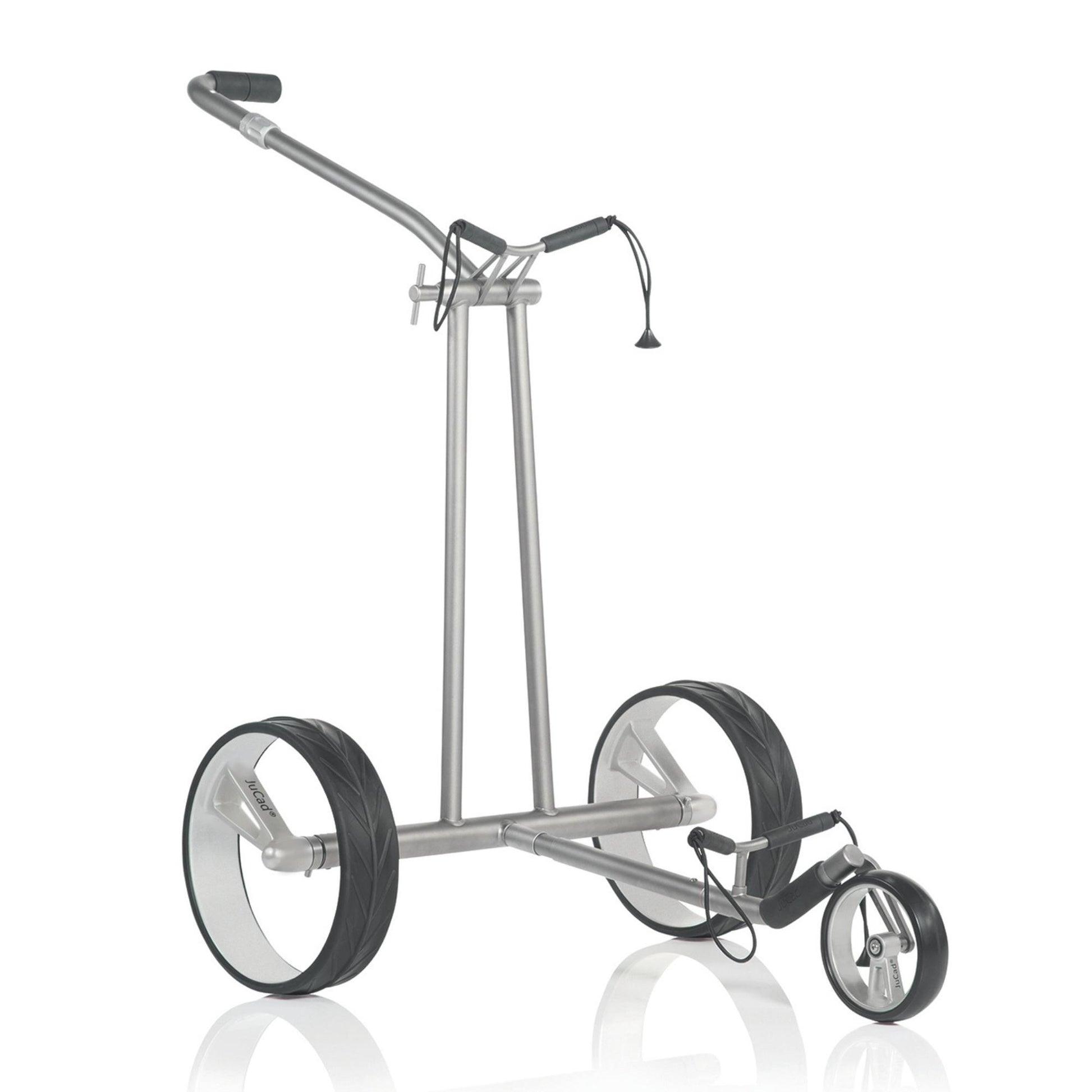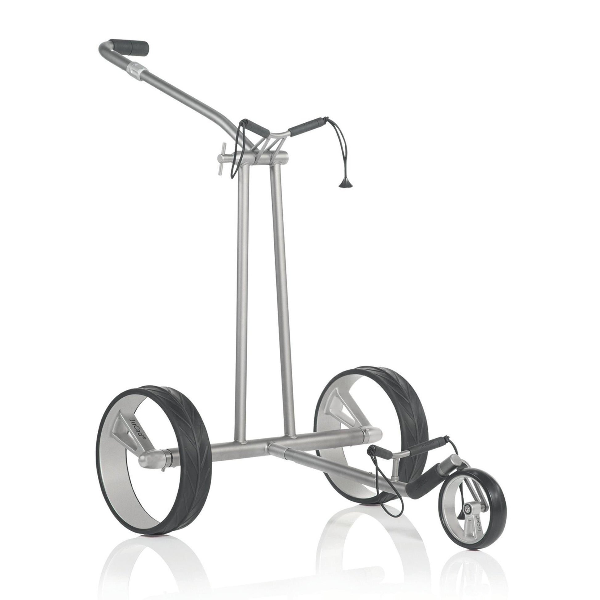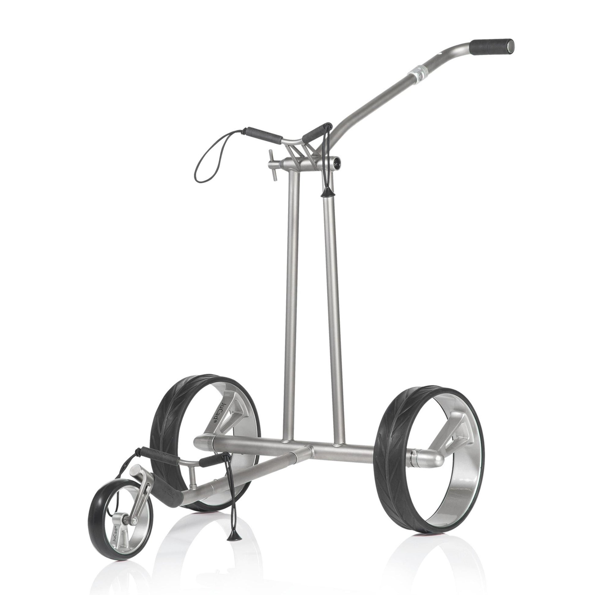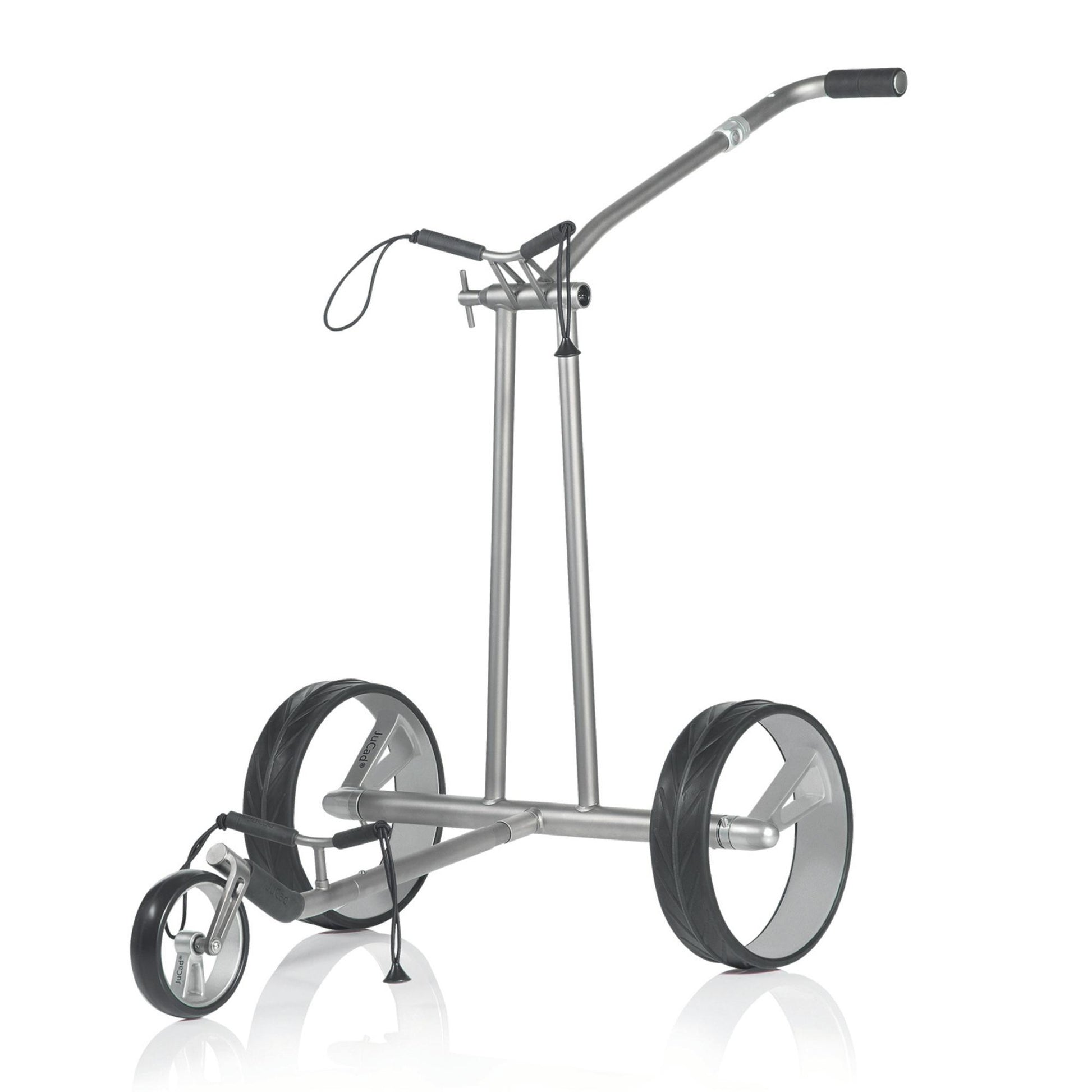 Wie ein Phantom gleitet dieser JuCad Titan-Elektrocaddy auf seinen unvergleichlichen Design-Felgen über das Fairway. Die eleganten Einspeichenfelgen aus Vollcarbon des JuCad Phantom Titan eX 3.0 sind schon eine Sensation für sich.